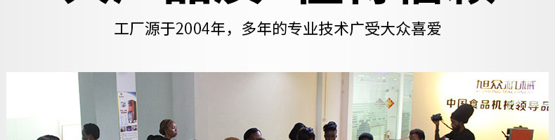 廣州旭眾食品機械有限公司是一家集科研開發(fā),生產設計,營銷服務為一體的現代化生產企業(yè)?,F代化生產車間,精湛制造技術,所產機械歷經市場重重考驗,不斷贏得海內外客戶的贊譽。