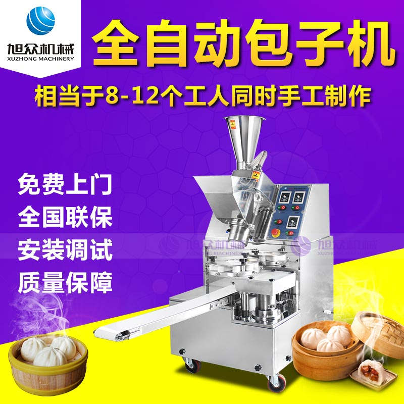 XZ-86型全自動(dòng)包子機(jī),可生產(chǎn)各種肉包、菜包、肉菜包、小籠包、湯包、水晶包、圓饅頭、奶黃包、豆沙包、叉燒包、南瓜餅、煎堆等十幾種包餡制品。適用于賓館、飯店、學(xué)校、機(jī)關(guān)企業(yè)食堂、饅頭或包子加工廠、早餐工程店及速凍食品廠等單位??蓾M足不同客戶群體。免費(fèi)提供工藝技術(shù)。免費(fèi)上門培訓(xùn)指導(dǎo)安裝。