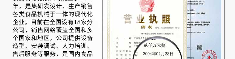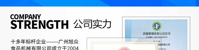 廣州旭眾食品機械有限公司是一家集科研開發(fā),生產(chǎn)設(shè)計,營銷服務(wù)為一體的現(xiàn)代化生產(chǎn)企業(yè)?,F(xiàn)代化生產(chǎn)車間,精湛制造技術(shù),所產(chǎn)機械歷經(jīng)市場重重考驗,不斷贏得海內(nèi)外客戶的贊譽。