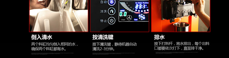 BQL-828立式冰淇淋機(jī),1.選用國際牌壓縮機(jī),輔以旭眾精湛工藝,大大縮短冰淇淋成型時間,高效節(jié)能;2.全新液晶智能觸控面板,簡單明了,多功能易操作;3.全新升級專業(yè)膨化泵,膨化率高,產(chǎn)量增加30%;4.一鍵清洗功能,省時方便;5.主要部件采用不銹鋼材質(zhì),時尚美觀,持久耐用;6.先進(jìn)的機(jī)械攪拌系統(tǒng),機(jī)器運(yùn)行穩(wěn)定可靠,低噪音,產(chǎn)品口感爽滑細(xì)嫩。