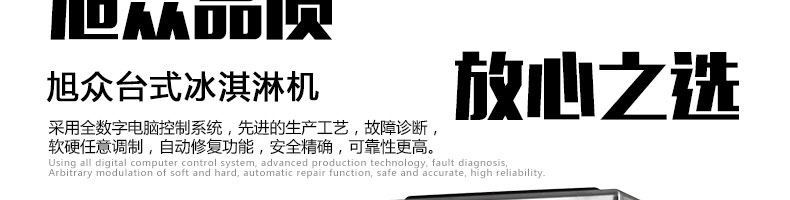 BQL-216T臺式冰淇淋機,●選用國際名牌成熟制冷配套件和高效壓縮機,融合旭眾精湛工藝輔以嚴格的質(zhì)量控制流程,使產(chǎn)品整體性能及品質(zhì)得以全面提升?!癫捎萌珨?shù)字電腦控制系統(tǒng),選用名牌優(yōu)質(zhì)電器元件,先進的生產(chǎn)工藝,故障診斷,軟硬任意調(diào)制,自動修復功能,安全精確,可靠性更高?!駥I(yè)成熟制冷系統(tǒng)設計,選用世界名牌大功率專用壓縮機,大大縮短冰淇淋成型時間,相同時間內(nèi)冰淇淋產(chǎn)量大幅度增加,使您生意火爆時依然得心應手,為您創(chuàng)造財富?!癜踩椒€(wěn)的機械攪拌系統(tǒng),噪音更低、振動更小,使整機運行性能達到國際先進水平。●確保進料溫度在0°C~35°C;環(huán)境溫度5°C~40°C勻可正常使用。