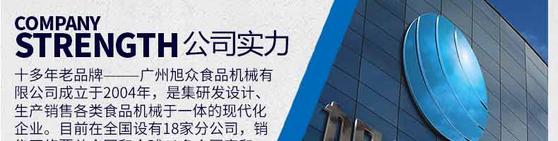 廣州旭眾食品機(jī)械有限公司是一家集科研開(kāi)發(fā),生產(chǎn)設(shè)計(jì),營(yíng)銷服務(wù)為一體的現(xiàn)代化生產(chǎn)企業(yè)?,F(xiàn)代化生產(chǎn)車間,精湛制造技術(shù),所產(chǎn)機(jī)械歷經(jīng)市場(chǎng)重重考驗(yàn),不斷贏得海內(nèi)外客戶的贊譽(yù)。