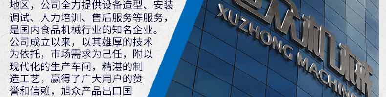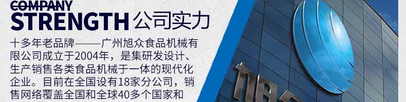 廣州旭眾食品機(jī)械有限公司是一家集科研開發(fā),生產(chǎn)設(shè)計(jì),營銷服務(wù)為一體的現(xiàn)代化生產(chǎn)企業(yè)?,F(xiàn)代化生產(chǎn)車間,精湛制造技術(shù),所產(chǎn)機(jī)械歷經(jīng)市場(chǎng)重重考驗(yàn),不斷贏得海內(nèi)外客戶的贊譽(yù)。
