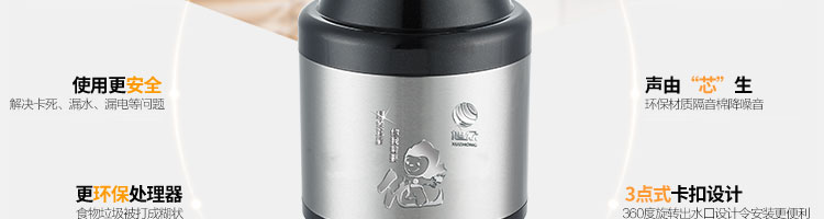 作者:旭眾機(jī)械發(fā)布時間:2017-04-15 11:42查看數(shù):您當(dāng)前的位置:首頁>>產(chǎn)品展示>>垃圾處理器系列>>家用垃圾處理器