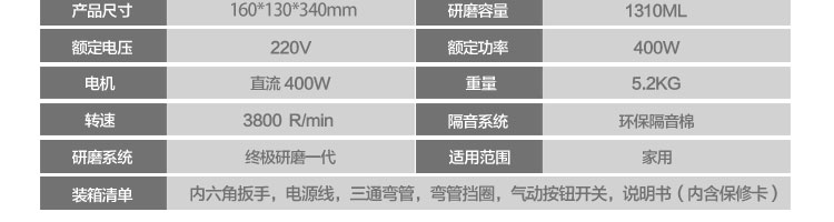 名稱DCLQ40-廚房垃圾處理器 電源220V 功率0.4kw 產(chǎn)量 尺寸 重量5.2kg 規(guī)格 其他轉(zhuǎn)速3000R/min,研磨倉容量1310ML