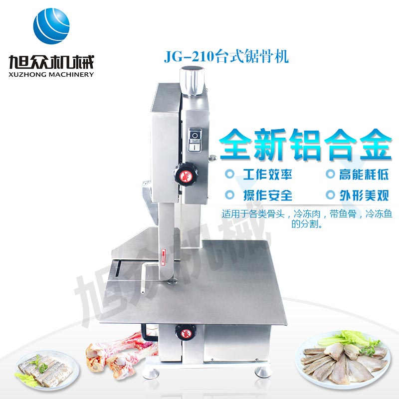 JG-210臺(tái)式鋸骨機(jī),適用于各類骨頭,冷凍肉,帶魚骨,冰塊,冷凍魚的分割。采用全不銹鋼材料制作,具有工作效率高,操作安全的特點(diǎn)。廣泛適用于食品加工廠,屠宰場,肉類加工廠等