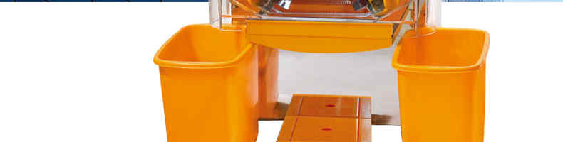 2000E-4自動榨橙汁機(jī),該機(jī)設(shè)計合理,采取擠壓式,鮮橙經(jīng)消毒、漂洗后,直接進(jìn)入機(jī)器 ,自動剝皮、榨汁、過濾,現(xiàn)榨現(xiàn)飲,不僅適用于小飲店、水果店、飯店、賓館、酒吧、卡廳、茶秀、咖啡屋等,也適用于成功人士的家庭使用。