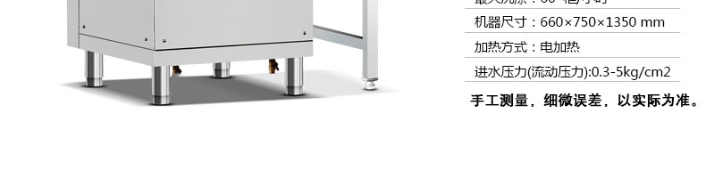 名稱XZ-60洗碗機-揭蓋式洗碗機 電源380V 功率11kw 產(chǎn)量 尺寸主機規(guī)格700*800*1500mm 重量 規(guī)格 其他最大洗滌高度400mm,洗滌量1000pcs/h,板材:全部304板材,1.2mm厚,標(biāo)配3個籃子
