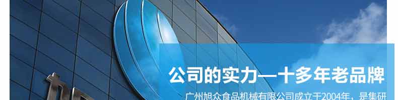廣州旭眾食品機械有限公司是一家集科研開發(fā),生產設計,營銷服務為一體的現(xiàn)代化生產企業(yè)?,F(xiàn)代化生產車間,精湛制造技術,所產機械歷經市場重重考驗,不斷贏得海內外客戶的贊譽。
