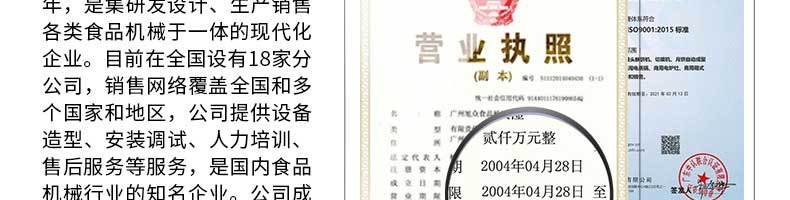廣州旭眾食品機(jī)械有限公司是一家集科研開發(fā),生產(chǎn)設(shè)計(jì),營(yíng)銷服務(wù)為一體的現(xiàn)代化生產(chǎn)企業(yè)?,F(xiàn)代化生產(chǎn)車間,精湛制造技術(shù),所產(chǎn)機(jī)械歷經(jīng)市場(chǎng)重重考驗(yàn),不斷贏得海內(nèi)外客戶的贊譽(yù)。